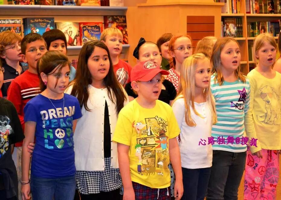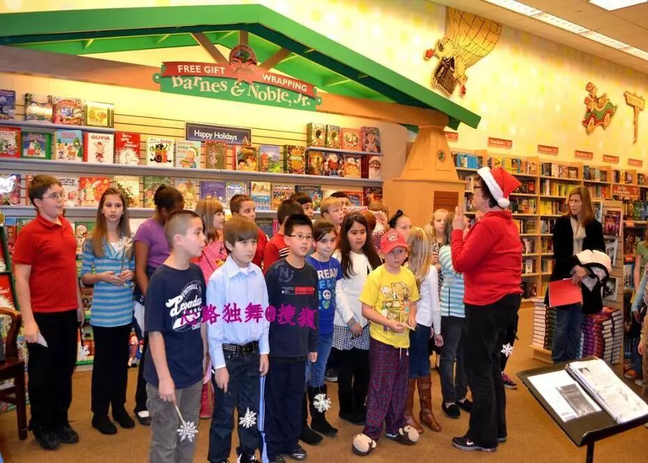 临近圣诞节了,孩子们还为书店的来客、家长等表演了圣诞合唱。