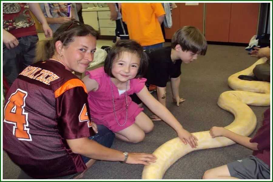 偶尔也会吓你一跳的,这是动物园带来展示给孩子们的巨蟒,丫丫居然还摸着,对着我笑,反正我是不敢摸的。