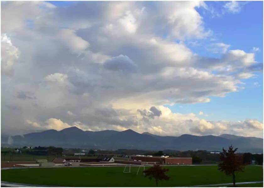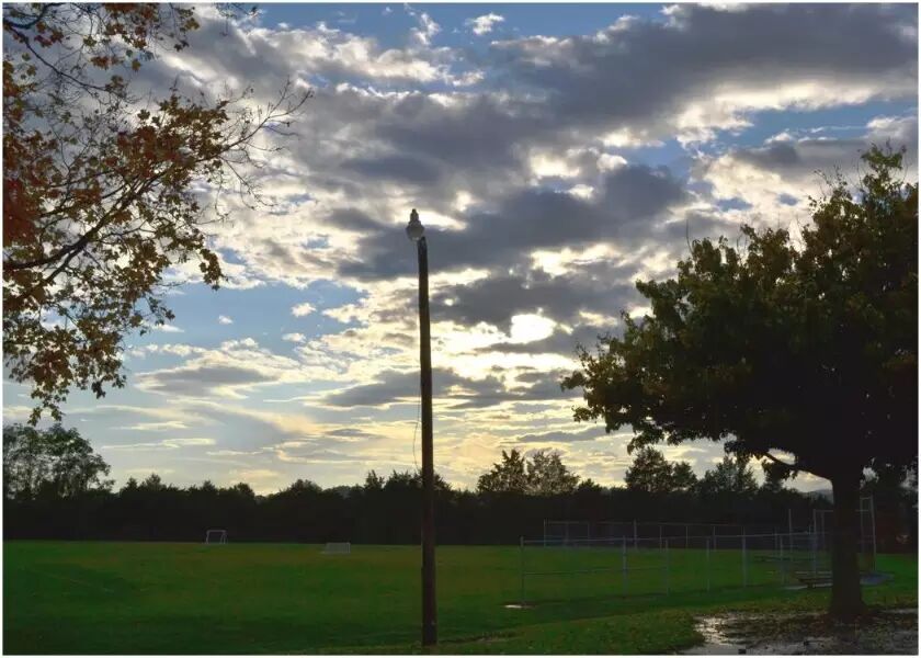 这段时间只要有机会就在拍摄秋景,相机便一直带在身边,但是老天不作美,总是在下雨。那天傍晚(学校早都放学了)途经学校的的时候,雨刚刚停下来,远山隐隐地出现了一条彩虹,突然觉得机不可失,停了车走进空空的校园,拍下了各个角度的风景。