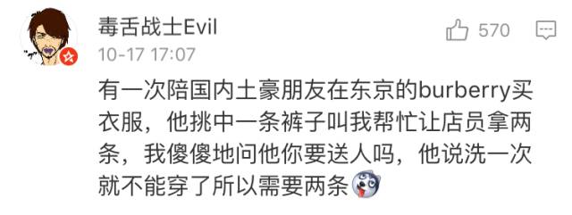一位网友在twitter上透露:一个女生买了件价值60万日元(大约$5000美金/ ¥35000人民币)香奈儿上衣,洗过一次之后就掉了色,去追问香奈儿客服,结果得到的回复却是:不好意思,我们的产品从来不考虑洗涤......