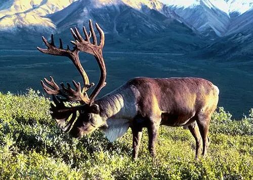 于是我们的主角终于登台了!驯鹿( Rangifer tarandus ),在英国叫做reindeer,在美国叫做caribou,请大家不要再认错了。前面用了那么多排除法,现在让我们来勾勒驯鹿的外貌:长着珊瑚形状的角,一些部分连成板状且左右不对称,脖子上有白色的胡须一样的长毛,尾巴短,脸不长……