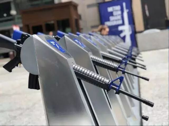 近几个月美国枪支暴力事件频发,各地都爆发不同规模的游行,对于枪支暴力,美国人再也承受不了了。芝加哥当地时间5月12日,10支“AR-15自动步枪”被摆放在戴利广场,犹如共享单车,但这些都不是真枪,只是一个艺术展。