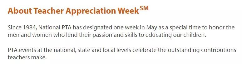在美国,每年5月份的第2周都有个特殊的日子等待被祝福和感谢,母亲节当然是一个,另一个是美国的教师节。不过,美国的教师节可不是一天,而是整整一周5天,被称为Teacher Appreciation Week(谢师周)。