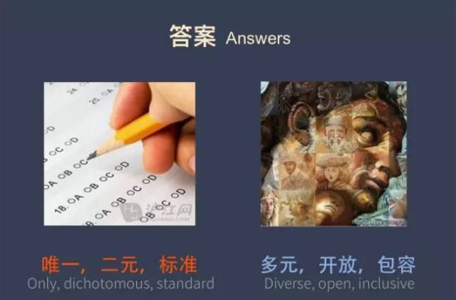 这些图片来自于著名教育学者——钱志龙的公益讲座《熊掌和鱼:略带偏见的中西方教育比较》。钱志龙博士青少年时期便保送北大,后又在美国三所大学分别获得两个硕士学位和一个教育学博士学位。华丽丽的履历背后,是他在亲历的跨文化交际中,所洞察到的中西方教育的差异。
