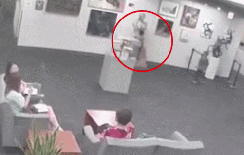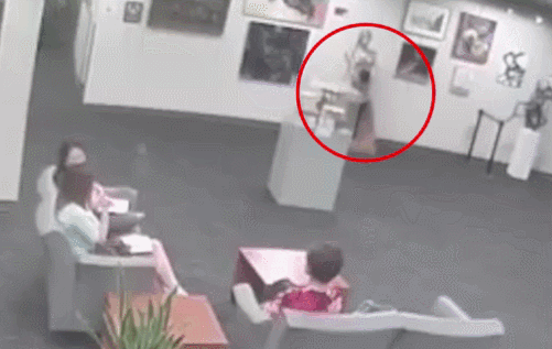 家里人一走,他就开始躁动不安地在展览室里疯跑起来,