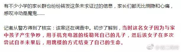 1月29日,一个五年级的男孩被妈妈误杀,随后,妈妈跳楼自杀。